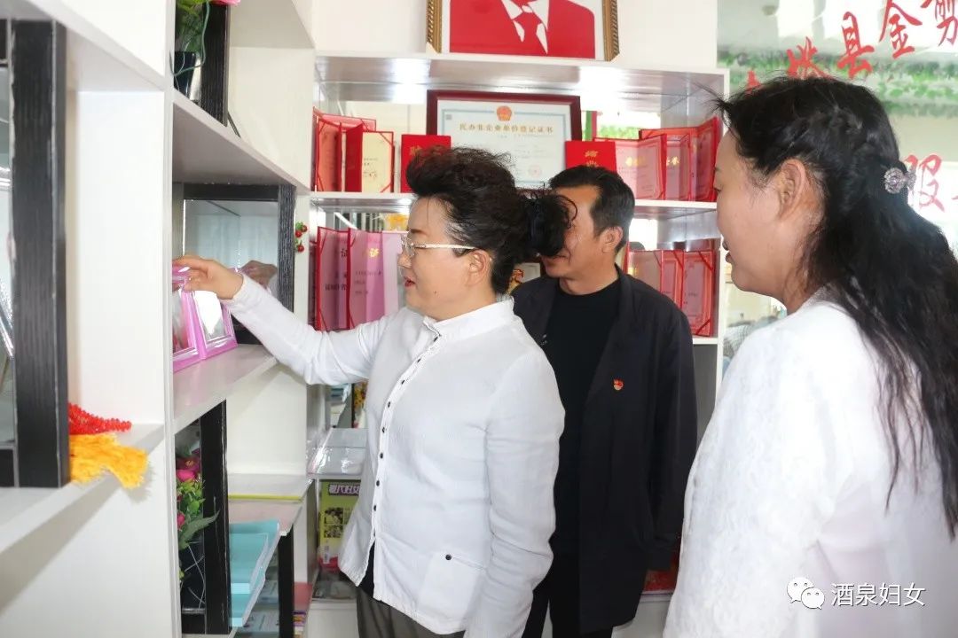 在金塔县巾帼扶贫车间暨金剪刀残疾人创业就业服务中心,调研组了解了巾帼扶贫车间作用发挥情况。金剪刀残疾人创业就业服务中心培训残疾人300余人,建档立卡妇女50余人,带动20余名残疾妇女通过手工编织、线上线下销售,月收入达1000 余元。调研组要求要发挥好巾帼扶贫车间示范带动作用,把弱势妇女群众联系好,带动更多的妇女姐妹脱贫增收。