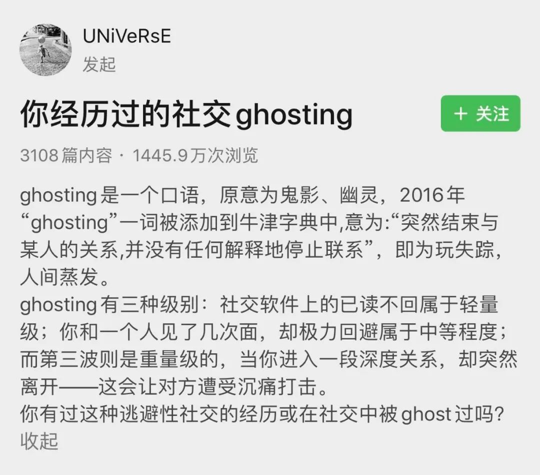 最近刷豆瓣,有个叫“社交ghosting”的话题很火。点开一看,发现遇到过的人还不少: