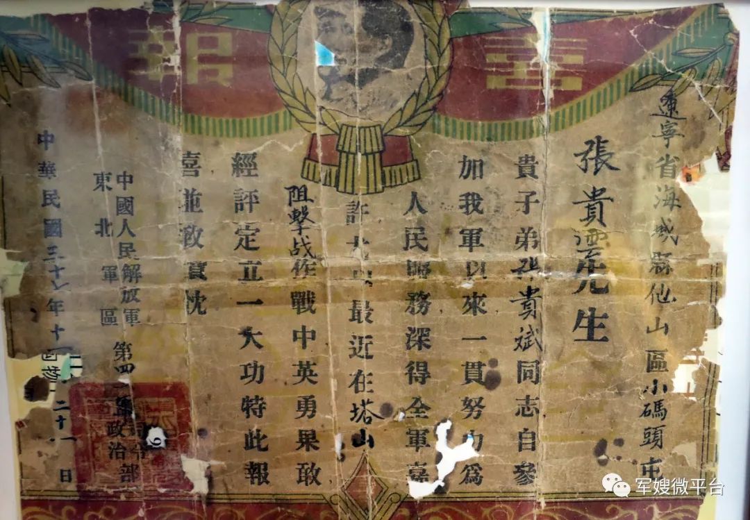 张贵斌曾获大功4次、小功4次。尤其是塔山阻击战那张“报功书”,泛黄的纸张边角已然破损,但上面“最近在塔山阻击战中英勇果敢,经评定立一大功,特此报喜”的一段文字,清晰记录着这位战斗英雄爱党报国、奋战沙场的英勇事迹。
