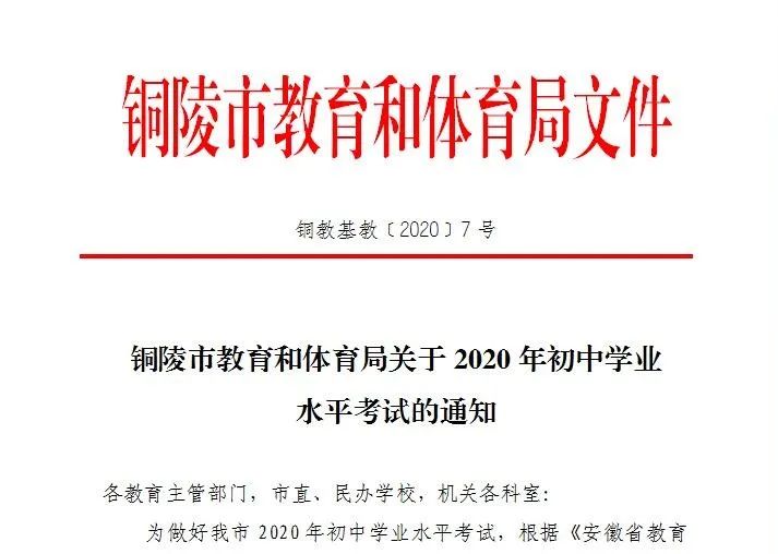 体育与健康和理科实验操作考试由市教体局统一组织实施,体育考试具体办法见《关于印发<2020年铜陵市初中学业水平体育与健康学科考试工作方案>的通知》(铜教体竞艺〔2020〕1号 )以及《关于做好铜陵市2020年初中学业水平体育与健康学科考试工作的补充通知》(铜教体竞艺〔2020〕3号 ),理科实验操作考试具体办法见《关于印发<2020年铜陵市初中毕业升学理科实验操作考试工作方案>的通知》(铜教信息〔2020〕2号)及相关补充方案的通知。