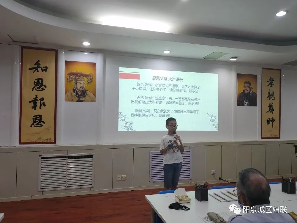 区妇联主席葛蕊在致辞中讲到,“忠孝传家久,诗书继世长”。孝道是中华民族有别于其他文明的重要文化符号,是中国文化之核心观念和首要文化精神。今天我们举办此活动,旨在传承中华民族传统美德,以孝道文化为主线,挖掘传统文化和良好家风,教会同学们知是非、明大义、讲诚信、重操守。
