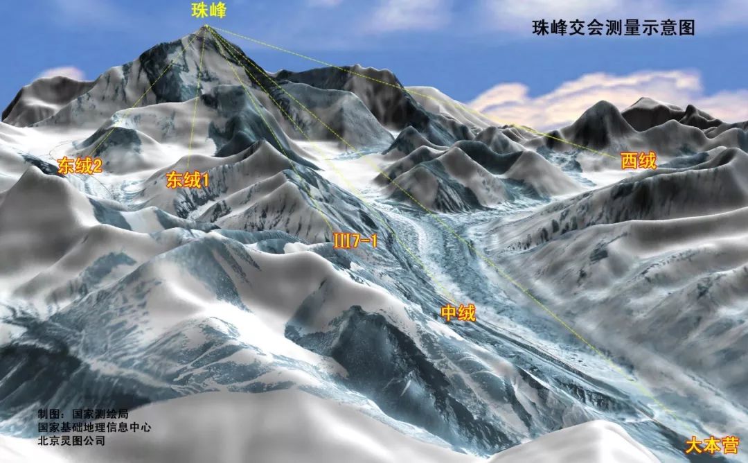 测绘队严谨地采用三角测量、水准测量等经典方法,再结合GPS卫星测量新技术,再测珠峰。经过多项测量的加权,这一次得到珠峰岩面8844.43的高度数值。