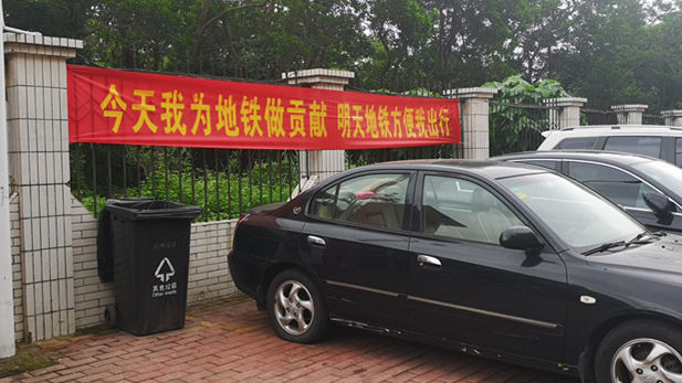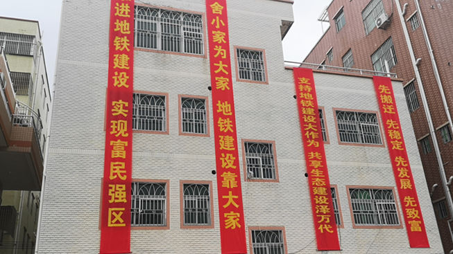 盐村居民小组支持地铁建设的标语横幅