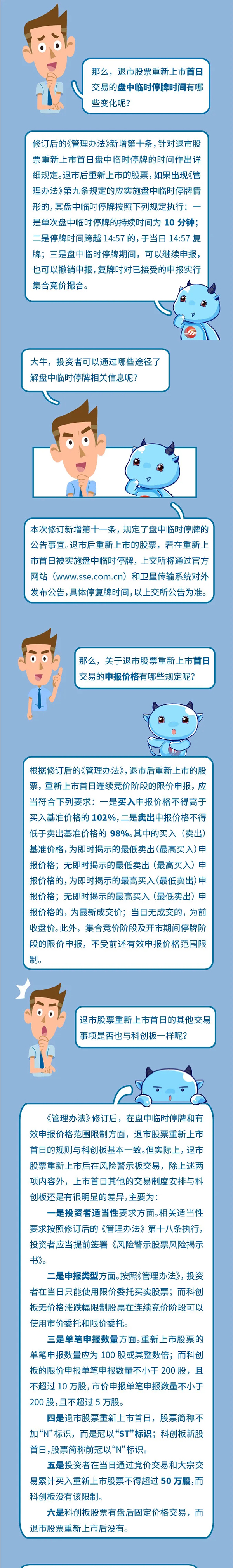 三、新增第十条:“退市后重新上市的股票,根据前条规定实施盘中临时停牌的,按照下列规定执行: