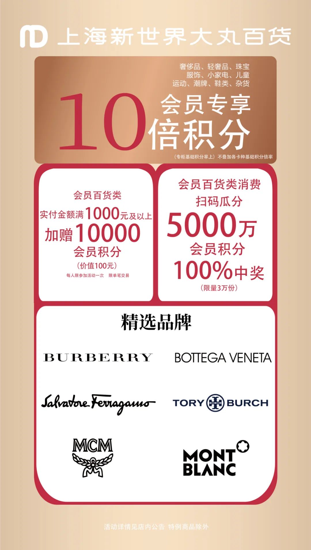 原标题:《一亿积分大放送!新世界大丸百货5月30日会员尊享日,仅限一天!》