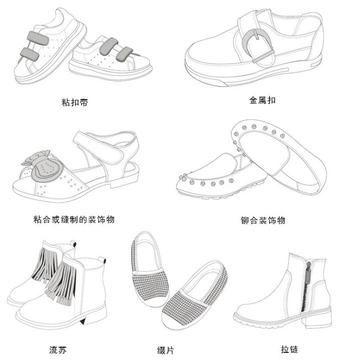 国标要求婴幼儿鞋上的小附件抗拉强力应≥70N,对于可拆卸或抗拉强力<70N的附件,不应能完全放入小零件测试器。