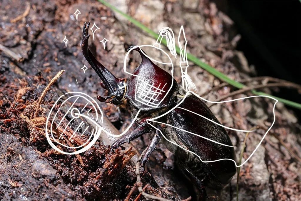 物种概述:雄成虫体长4~6厘米,俗名独角仙;体大而强壮,体色从深红到红棕再到纯黑,雄虫头部前方有1个鹿角状的犄角,末端开叉,前胸背板也有1枚小犄角,末端开叉,是雄虫为了争夺食物和交配权而搏斗的武器;成虫常在山林高大乔木的伤口处舔食汁液或取食熟透的水果。