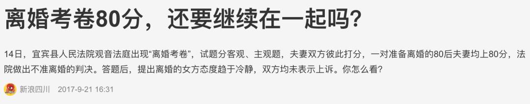 四川宜宾就有一对80后夫妻,因为考试成绩太好,被法官判定双方感情深厚,不准离婚。
