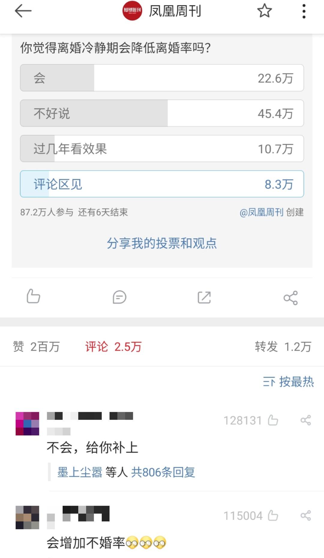 央视新闻 5月15号发布了一条微博:民法典草案拟引入“离婚冷静期”,你支持吗?