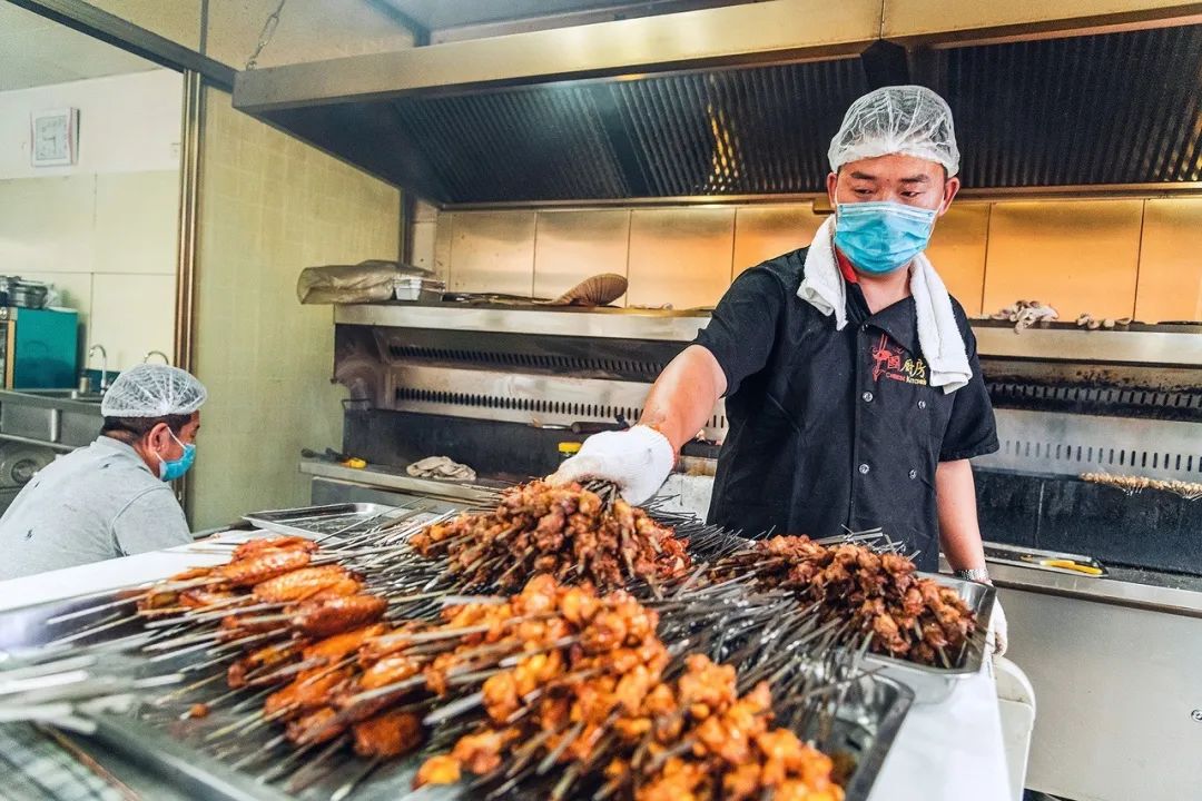 经验丰富的烧烤师傅看着串儿