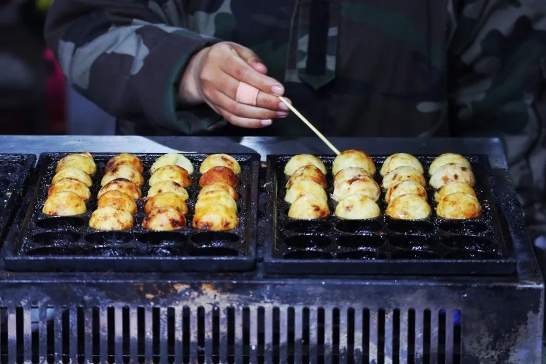 金黄微焦的章鱼小丸子在等待食客驻足