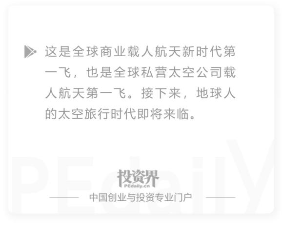 这是全球商业载人航天新时代第一飞,也是全球私营太空公司载人航天第一飞。接下来,地球人的太空旅行也许不远了。