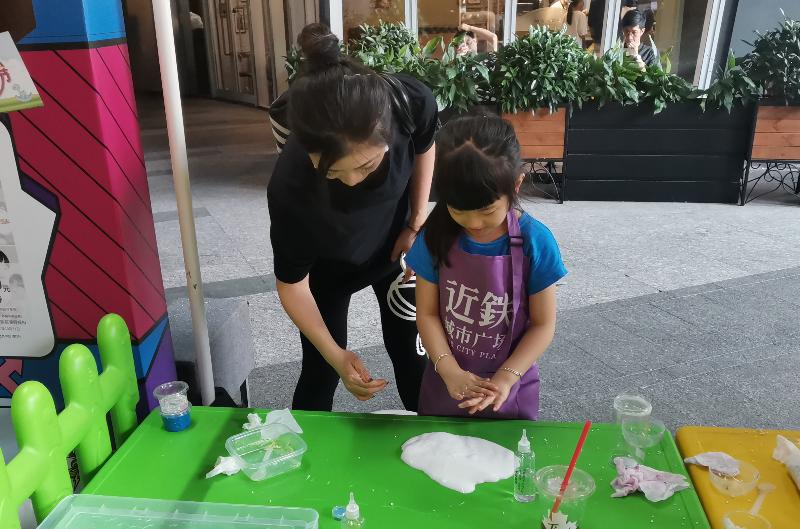 一旁的直排轮训练场,小朋友们正在体验风一般的感觉。“我们正在为6月的复工做准备,也想借这次六一活动,多吸引一些人气。”近铁城市广场里约有15%的商户是儿童培训机构,为了让这些儿童培训机构能够顺利复苏,商场方面也是为他们搭台,机构以体验、游戏的方式吸引小朋友的参与。“通过这样的方式,向家长和小朋友们预告,儿童培训即将重新开业,对他们的复工复产也有着一定的帮助。”近铁城市广场总经理江雪芬表示。