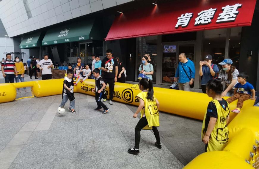 “加油,加油。”“左边包抄。”“防守,防守!”南广场上,微型足球场中正在上演一场二对二足球赛,男生VS女生。奔跑带球,花式过人,一个侧身避开了截球的男生,个子娇小的女生直接把球踢进了球门,现场立即响起了掌声和欢呼声。五分钟一场的比赛,让孩子们在奔跑中感受到久违的大汗淋漓。“太爽了,我们还赢了男生呢。”一场比赛下来,小女生依旧体力充沛,而小男生累得直接趴在了场边。“哈哈,我们让让女生的,输了也很开心。”看到孩子们玩得不亦乐乎,一旁的家长也跃跃欲试。这边母子队对阵母女组,妈妈们负责守门,娃儿们冲锋在前,爸爸们则在一旁加油呐喊。不过,最终还是女足赢了男足。