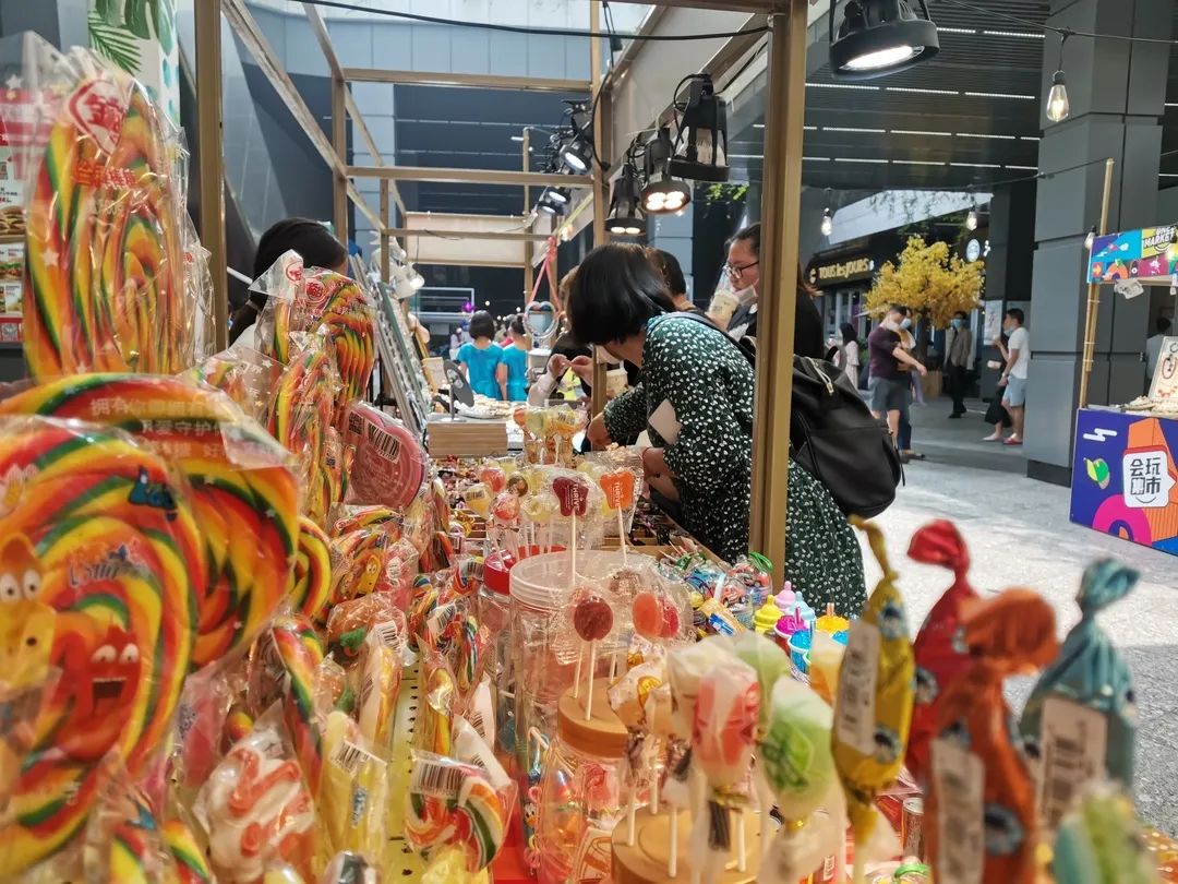 此外,“会玩”嘉年华上,不仅有好玩的,还有会玩集市和网红美食,让大朋友小朋友逛不停,吃不够。集市上,琳琅满目的小商品让妈妈和小朋友爱不释手。发圈、饰品还有可爱的棒棒糖,各式各样的零食都成了热销品。商场地下的城市超市也来“赶集”,足足搬上来两个柜台的进口零食和水果,让人馋涎欲滴。