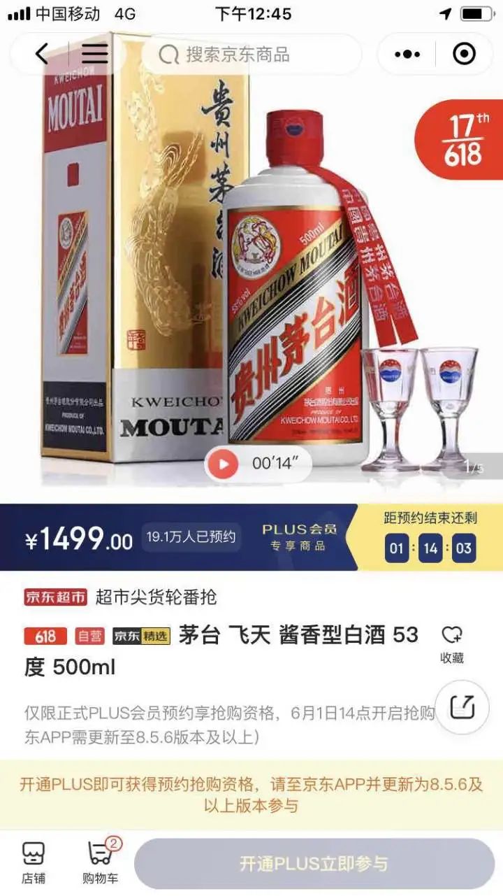 当然,茅台股价的短期直线拉升还和茅台酒的一个提价消息有关。有消息称,“53度飞天茅台的官方指导价可能会大幅上调200元至1699元/瓶,而调价窗口在今年9月份。”在互联网电商的茅台官方旗舰店上,一瓶53度飞天茅台的售价为1499元,不过该标价下的茅台酒需要预约购买,截至今天中午12:47,预约人数已经超过19万人。而一些茅台生肖酒的价格则在2600元/瓶以上,一些好的年份酒标价超过4000元/瓶以上。