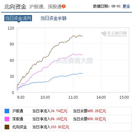 在市场放量走高的同时,北向资金继续进场。截至收盘,北向资金全天净流入超百亿元。
