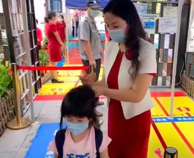 在福田区的深圳长城幼儿园,大、中、小班今天都开学了。为了安全入园,学校安排孩子们分批、错峰入园。据了解,长城幼儿园这周开学的人数在一半左右。