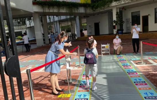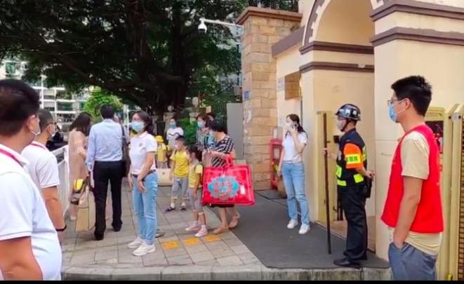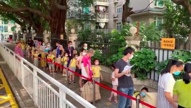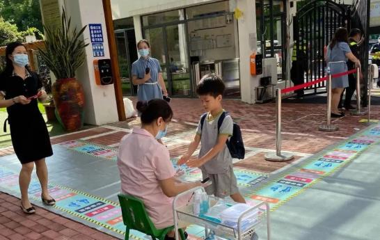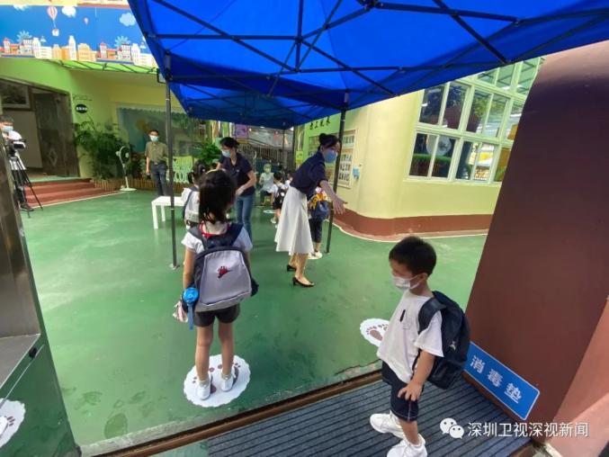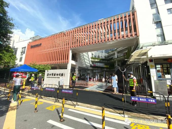 早上8点,记者在深圳实验幼儿园百花部看到,孩子们正在有序入园。学校在进园门口设置了缓冲区和家长接待区,方便家长接送孩子入园。