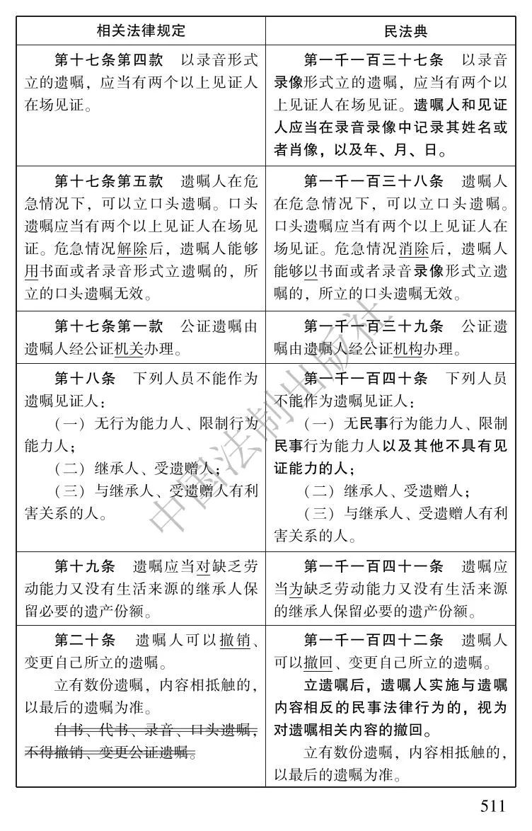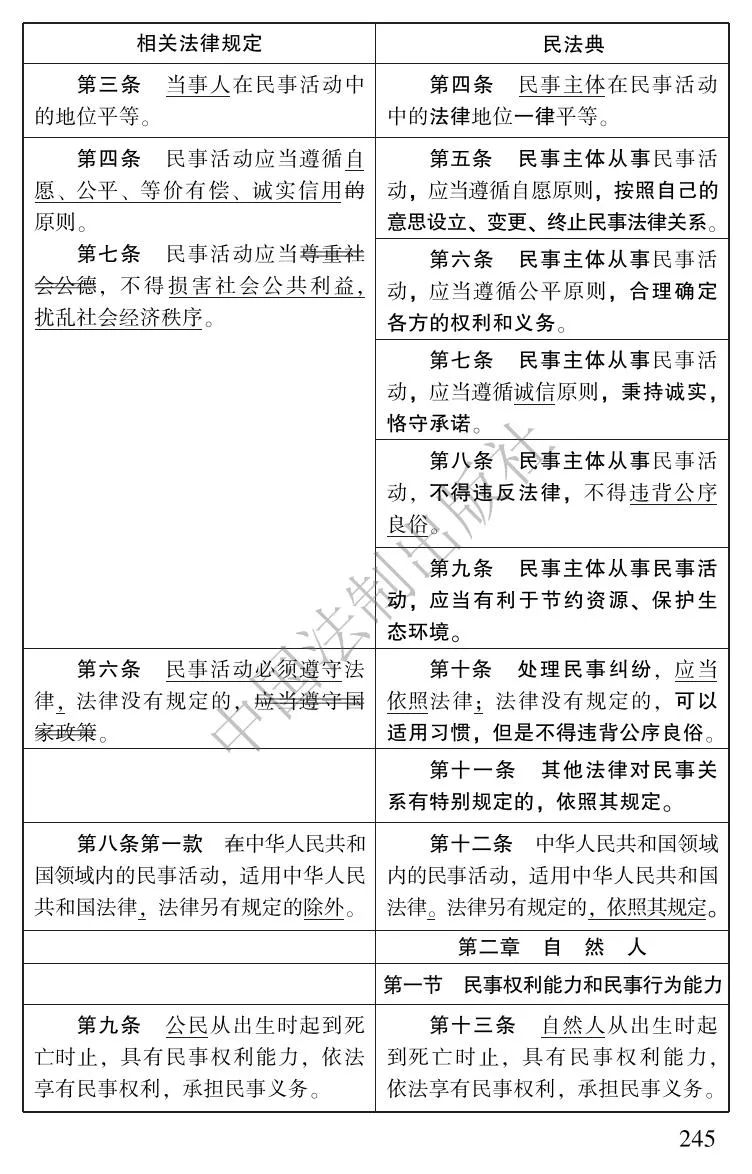 中国法制出版社法律法规专业编辑团队第一时间编辑整理了本版民法典新旧内容对照,以期为各位法律同人在学习民法典的过程中尽绵薄之力。内容准确且全面,值得收藏。