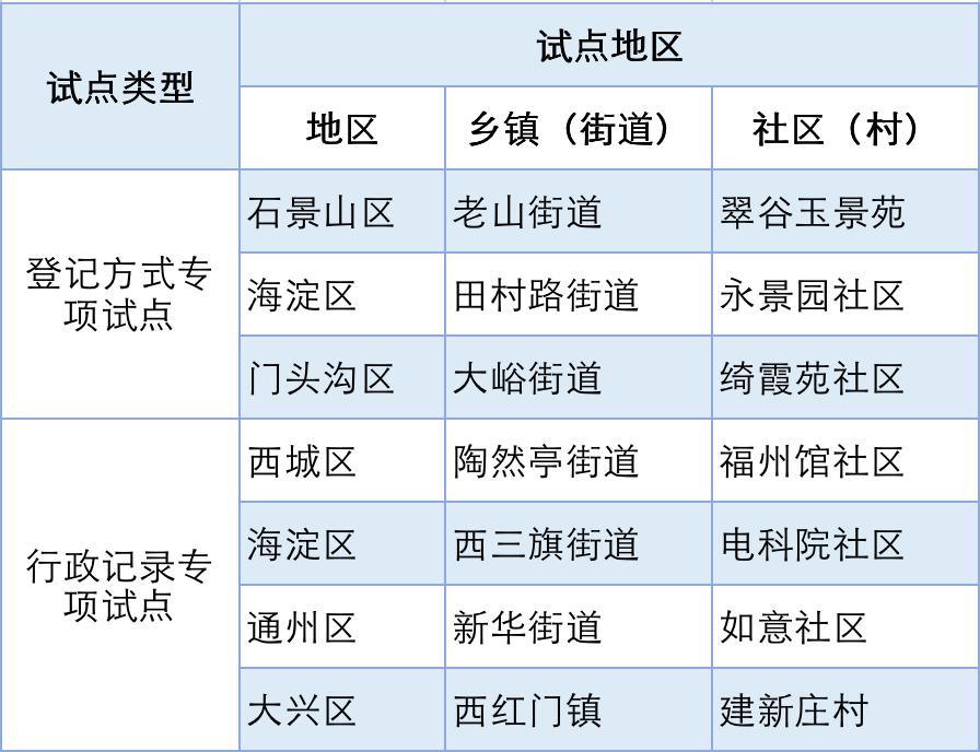 登记方式专项试点和行政记录应用专项试点