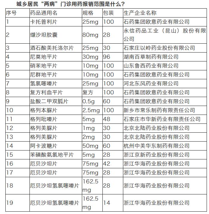 城乡居民“两病”门诊用药报销范围是什么?