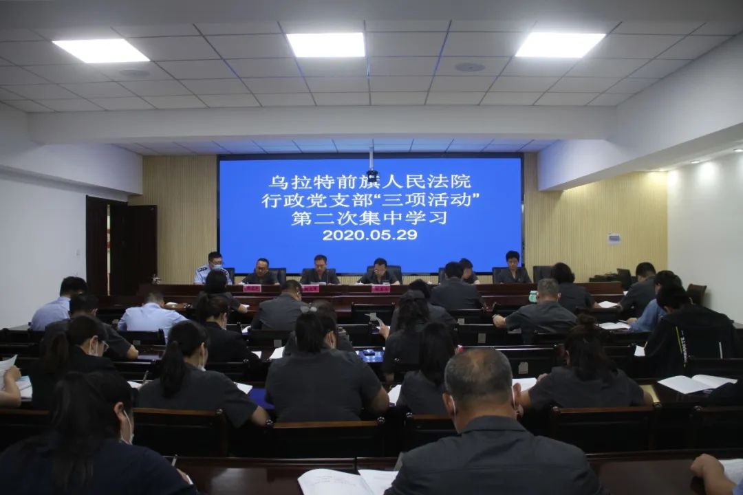 5月29日下午,按照院党总支的要求和部署,乌拉特前旗人民法院行政党支部认真组织支部党员及所属部门的全体干警开展“三项活动”第二次集中学习,认真贯彻落实我院“三项活动”会议精神。院党组书记、院长魏春雨以普通党员的身份参加学习,总支书记贾志刚、党组成员薛建军、行政支部全体党员以及所属政治部、综合办公室、审判管理办公室等部门的入党先进分子、非党员干警、书记员、志愿服务人员等人员参加了学习,会议由党组成员、总支副书记魏立军主持。