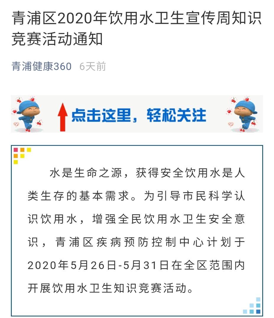 原标题:《【工作动态】安全饮水,健康上海--2020年饮用水卫生宣传周活动》