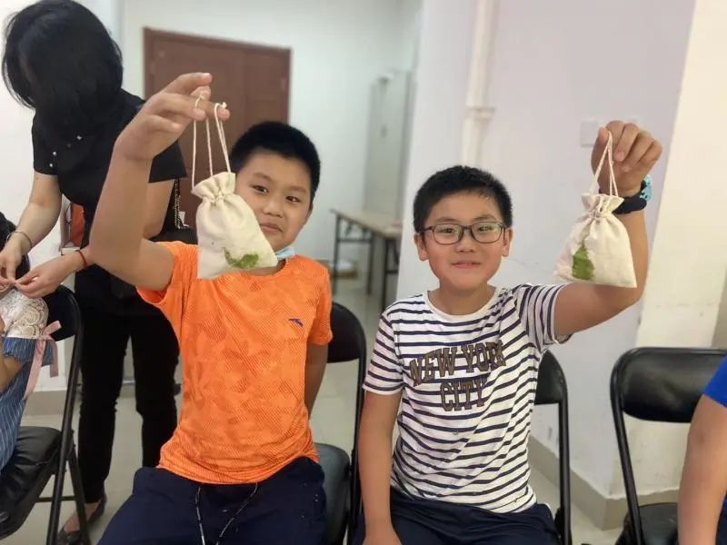 首先青少年在老师的带领下一起到社区中捡拾树叶作为拓染素材,户外收集结束后,孩子们再次回到活动室,并在老师的指导下利用中国最早染布技术“拓染”的方法自己动手制作拓叶香包。