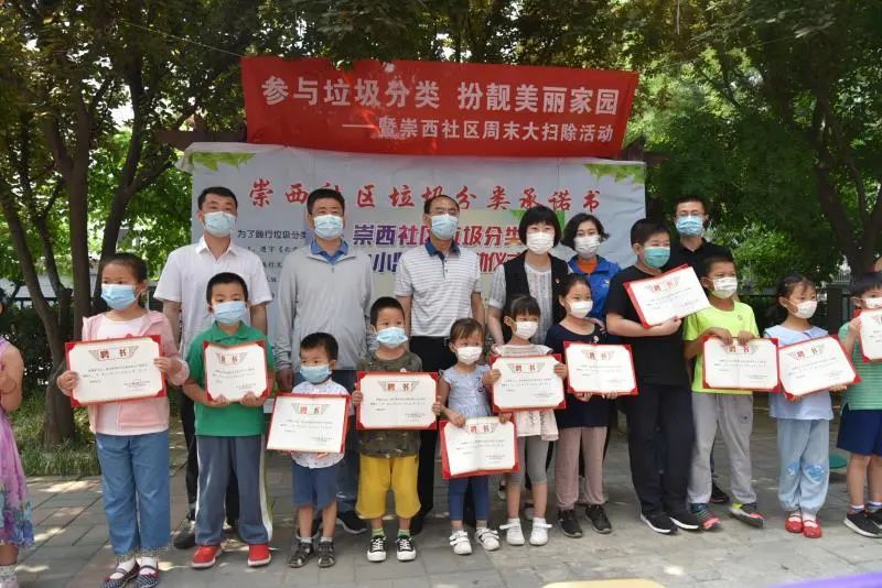 除此之外,东城区崇外街道崇西社区,近期举办了垃圾分类小小监督员启动仪式,共有22名孩子来到社区争当小小监督员,崇外街道工委书记梁成才和办事处副主任李海平、龚新宇来到活动现场,为孩子们颁发了小小监督员聘书以及崇西社区自己设计的徽章,鼓励孩子们从小养成垃圾分类的好习惯,为创建美好社区贡献自己的一份力量。