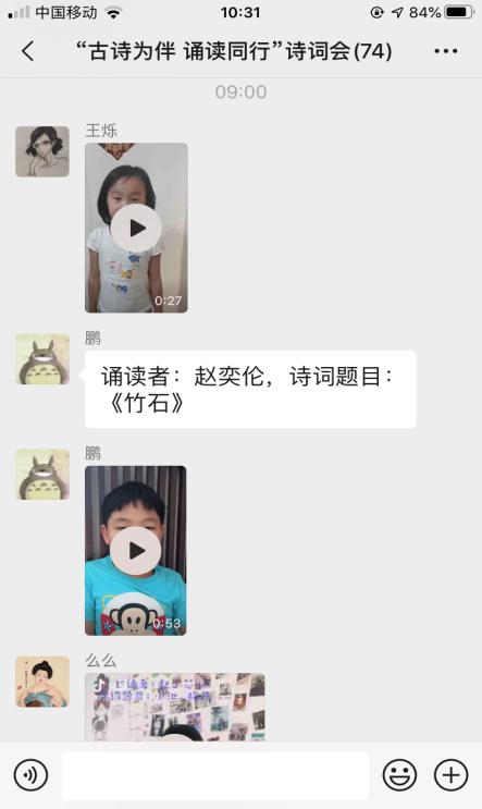 在中华五千年浩瀚的历史中,古诗文就像是一颗璀璨的明珠熠熠生辉,本次活动社工进行了精心的设计,从关爱儿童、服务儿童的角度出发,以诵读这一深受少年儿童喜爱的方式展开。经过广泛的宣传动员,鼓励家长和孩子一起参加,将古诗词融入家庭生活,活动吸引了2--16岁的60个家庭参与。这些新时代的中华少年,用稚嫩但悠扬铿锵的声音,在微信群里分享视频,诵读千古美文,传承华夏文明。