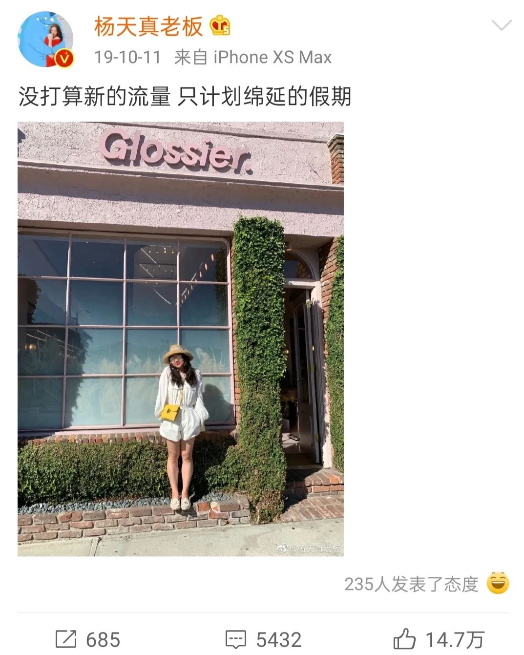 杨天真穿着礼服身材丰满精修照片照片引发了话题,她迅速调侃道:“哇,比我好看好想活在精修图里。”精修图上了热搜叫“杨天真鱼尾裙”时,她又立刻跳出来纠正:“我只想和各位营销号背后的直男说,这叫细带褶皱裙,不叫鱼尾裙。”