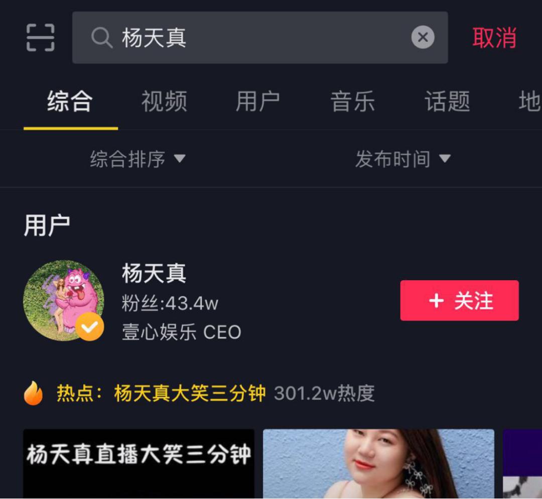 6月1日官宣进军主播界当晚,杨天真的抖音直播果不其然又制造了新话题,“杨天真大笑三分钟”冲上抖音热搜。