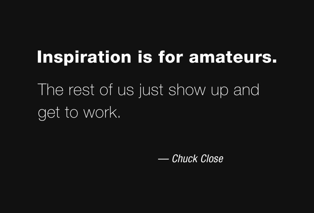 说到一筹莫展,我想到美国艺术家Chuck Close说:“Inspiration is for amateurs. The rest of us just show up and get to work.” 业余的人才需要灵感;专业的人有手段,通过专业的流程,怎么样都能做出来。我非常认同这个说法。设计,有艺术的部分,也有技巧的部分。设计师通过专业的技巧,总是可以做出东西的。至于能不能上升到艺术,这就是更高的要求。但总不该“一筹莫展”,总是能有产出的。