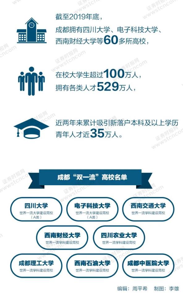 数据显示,截至2019年底,成都拥有四川大学、电子科技大学、西南财经大学等60多所高校,在校大学生超过100万人,拥有各类人才529万人,近两年来累计吸引新落户本科及以上学历青年人才近35万人。2019年全球人才竞争力指数报告显示,成都排名第93位,超过深圳、武汉,本地高校应届生留存率居全国第三。