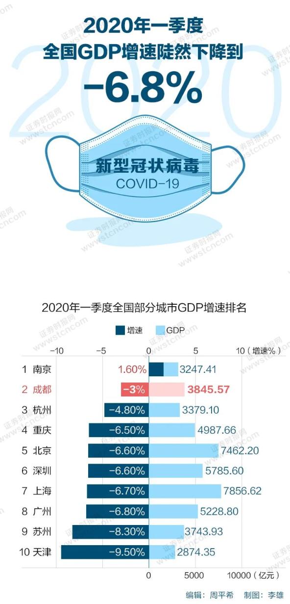 今年一季度,受新冠肺炎疫情的影响,全国GDP同比下降6.8%。成都市一季度实现地区生产总值3845.57亿元,比上年同期下降3.0%。