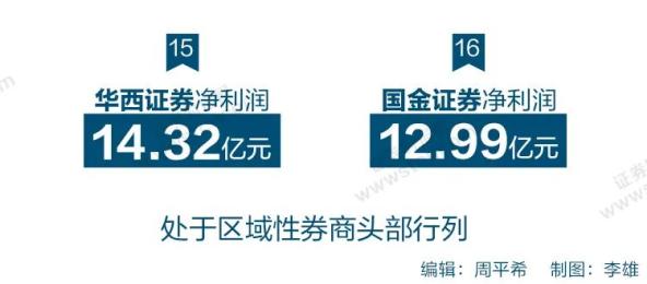 数据显示,2019年,包括中信、海通等头部企业在内的44家上市券商中,华西证券、国金证券分别以14.32亿元、12.99亿元的净利润分列第15位和第16位,处于区域性券商头部行列。
