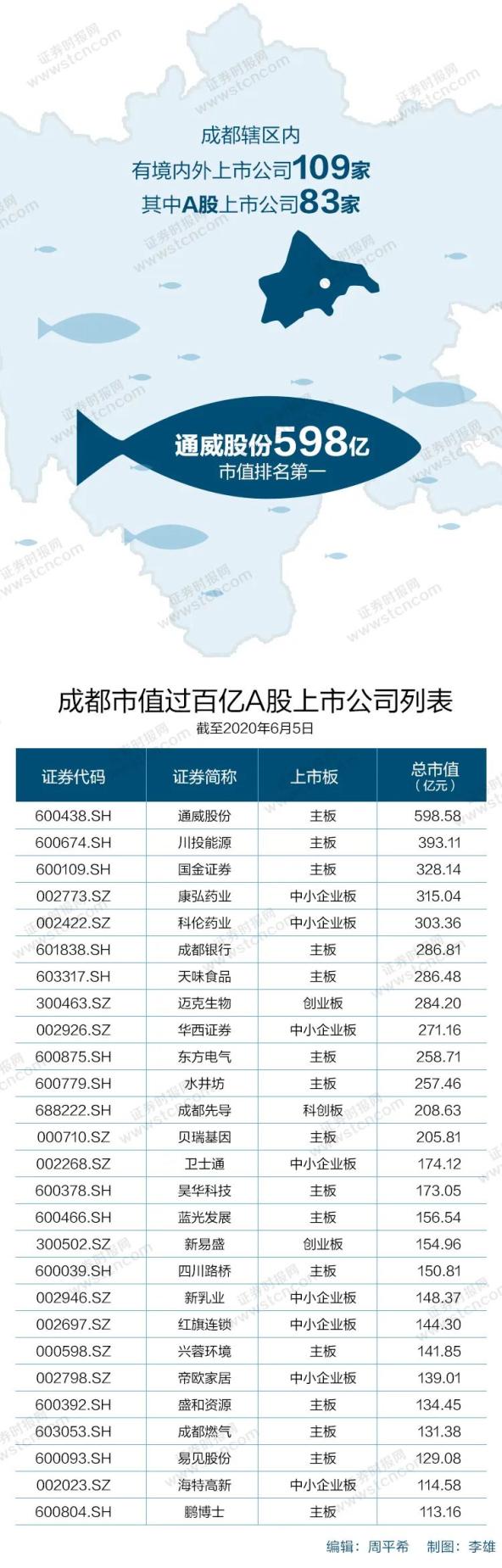 截至目前,成都辖区内有境内外上市公司109家,其中A股上市公司83家。