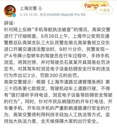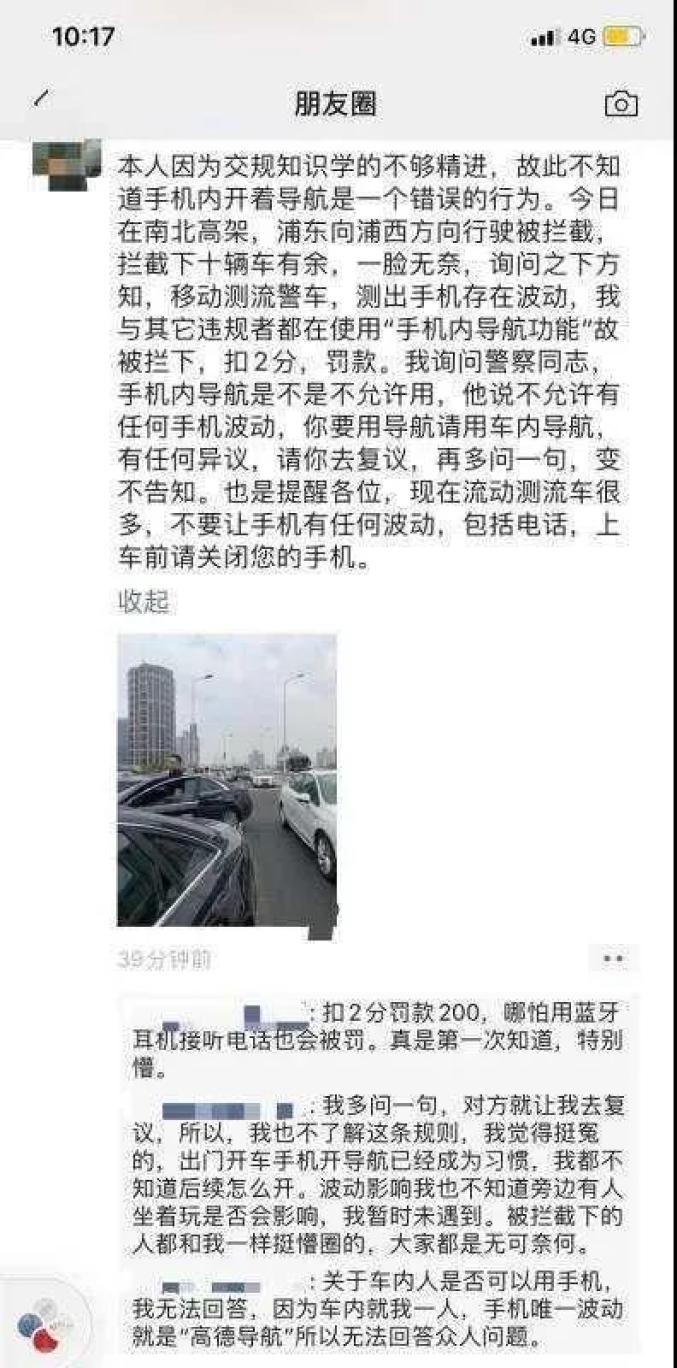 这场争议,源自一张朋友圈截图。5月29日,一位网友称其在高架上因使用“手机内导航功能”被交警拦下,被扣2分并罚款。