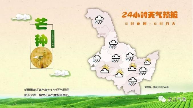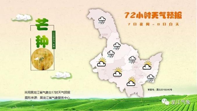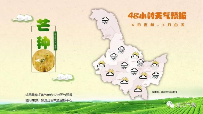 6日夜间到7日白天:大兴安岭、黑河、伊春南部、齐齐哈尔北部、绥化北部、哈尔滨北部、鹤岗、双鸭山、鸡西多云有分散性阵雨或雷阵雨,其他地区晴有时多云。