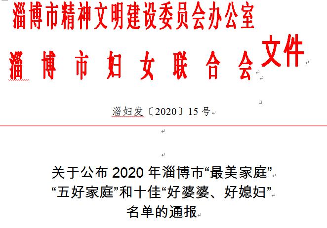 原标题:《高青法院一干警家庭荣获2020年淄博市“最美家庭”“五好家庭”称号》