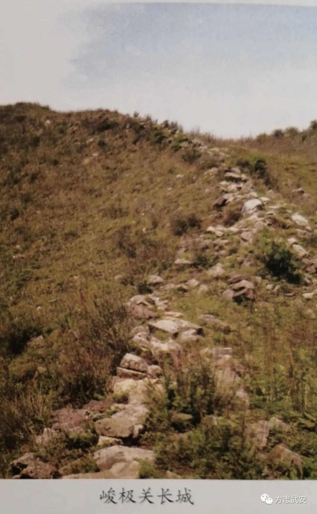 武安长城连绵约40公里,现存城墙6段,墙体总长约2000余米。计有关隘2座,烽火台15座,山神庙2座,城堡1座,房基址4处,重修碑4通,匾额1块,峻极关长城位于活水乡长寿村(原名艾蒿坪村)北1公里,居摩天岭主峰北侧山腰处。此处北与邢台县交界,西与山西省左权县接壤。峻极关长城是武安市境内明代长城的北起点。