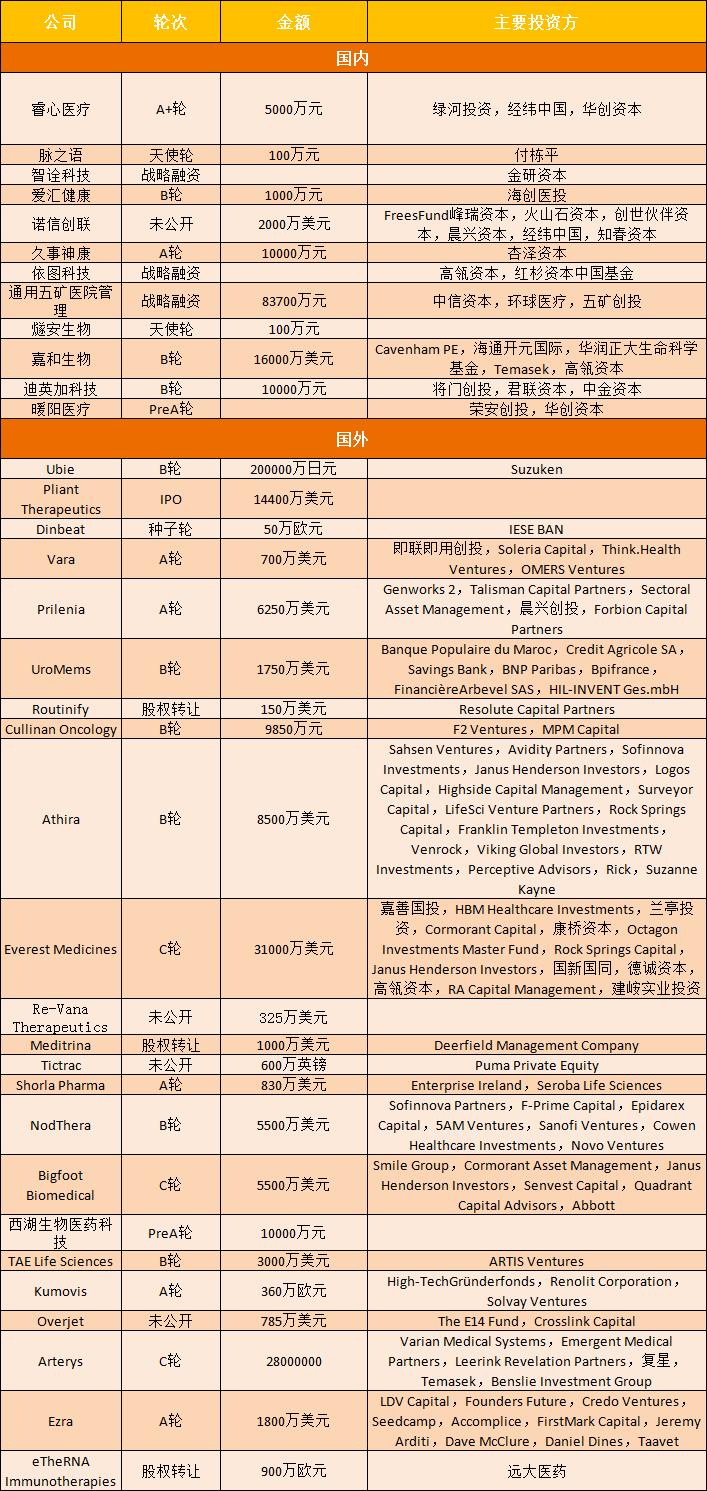 本周国内外医健领域共有35起融资事件。
