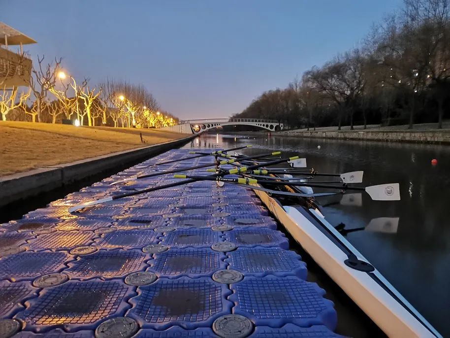 “最难熬的是暑训。”队员们都这么说。2019年8月8日早上5:30,迎着朝霞,张轩铭与队友们开始了暑期第一天集训。先是准备活动加水上20公里,虽然是一天当中温度较低的清晨,队员们依旧汗如雨下。不同以往的是这次的水上训练转移到了京杭大运河,航运河道上游轮、货船不时掀浪而过,赛艇犹如水中落叶难以掌控。头顶烈日划个来回,1000毫升饮用水是每名队员的必备品,汗水浸透训练服,整个人像刚从水里捞出来的一样。“防晒霜必须涂3层,不是怕晒黑,而是防晒伤,因为就算涂再多,一身身的汗一出也就冲淡了。”队员们深有体会地说。遇到室外气温过高,就改成室内长距离划,那也是半程马拉松起步。30分钟划船器三组或40分钟两组、短时间间隔多次500米冲刺……一天三段训练下来,水上里程达60公里,桨旋转、拉水,手掌早已水泡遍布。在接下来的大半个月的高强度集训里,队员们全然不顾身体的伤痛、烈日的炙烤,克服一个个困难,忘我地投入训练,从未言弃。