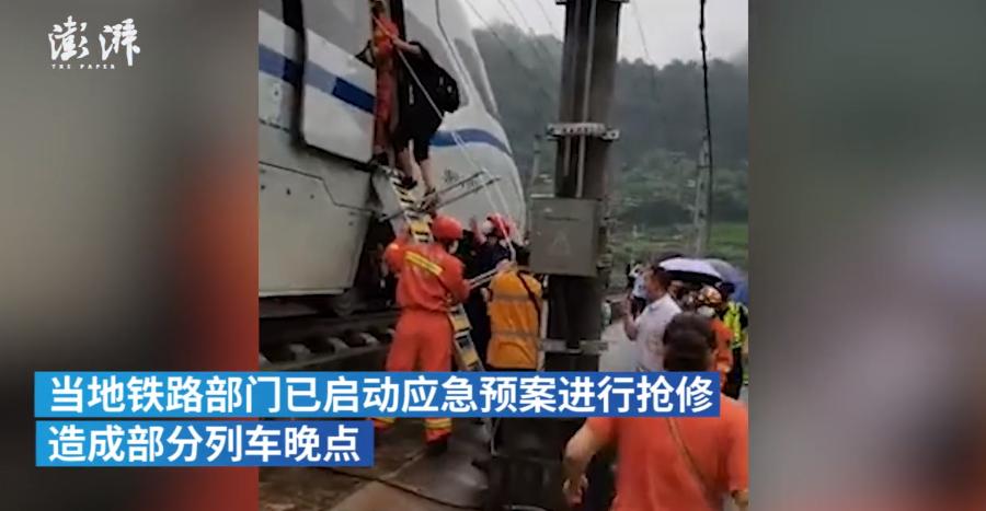 中国铁路广州局集团有限公司党委宣传部工作人员向记者表示,因落石受阻的车组属于广州局,但事发地点在南宁局管辖范围内,以南宁局发布的消息为准。中国铁路南宁局集团有限公司党委宣传部工作人员表示,该事件暂无人员伤亡,网传“脱轨”的说法不准确,相关情况以官方通报为准。