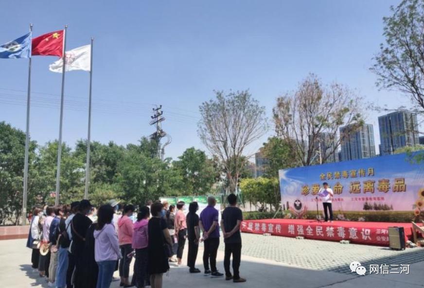 活动开始,鼎盛东街道党委书记白瑞东宣读了《三河市鼎盛东街道办事处禁毒倡议书》,鼓励在场的街道社区全体干部认真学习国家禁毒方针政策、法律法规和毒品知识,从自身做起,自觉抵制毒品。各社区要进一步发动广大群众,积极参与禁毒活动,主动学习禁毒方针政策、法律法规,自觉接受拒毒、防毒知识,不断增强防毒、拒毒自我保护意识。全体干部特别是党员干部要以身作则,积极投身于禁毒人民战争,发现贩毒、吸毒的线索和窝点要大胆举报,敢于同毒品违法犯罪作斗争。