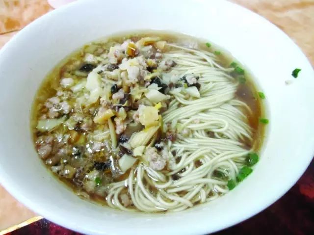 至于咸菜肉丝面,则出于渔郎桥的万泰饭店。万泰饭店创于光绪初年,善调治家常菜饭,其面点著名,尤其开阳咸菜肉丝面为其所创。