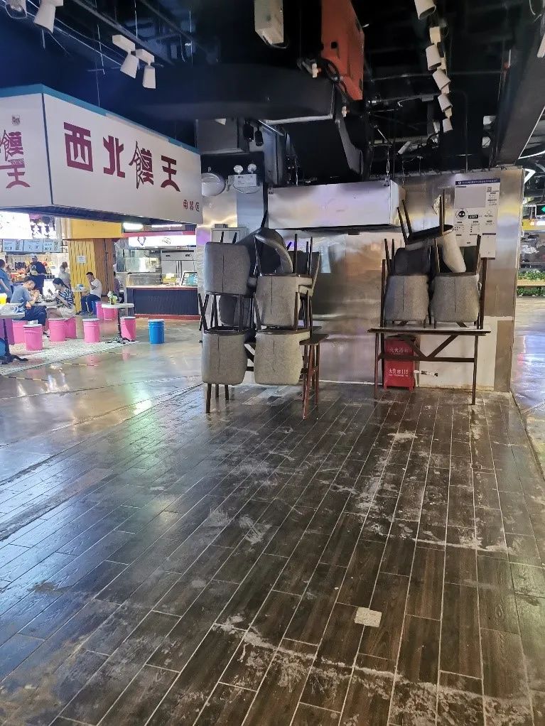 直至6月初,食街内部,靠西侧的一排店铺中,“东乐鲜果”水果捞仍未开业。“东乐鲜果”的玻璃窗上没有贴任何标识或通知。老城一锅羊蝎子、肥霖厨房、茶花妹子云南餐厅、小吊梨汤、桐记小肚儿牛板筋火锅等餐厅都已经营业,但除小吊梨汤门前不时有顾客进出,其他餐厅的顾客屈指可数。小吊梨汤从大年初二一直停业到4月1日,开业后复工的员工只有十几名,正常情况下店内员工则一共有几十名。员工告诉记者,开业后平均一天仅能招待十余桌,且因禁止群体性聚餐,规模大多只有两三个人,与平日里需要排队的情况大相径庭。