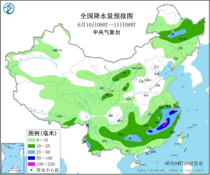 主雨带多集中在江南东部,