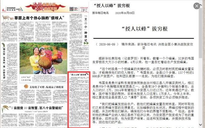《新华每日电讯》以题为《“授人以蜂”拔穷根》关注了贵州深度贫困县致富带头人韦国良。
